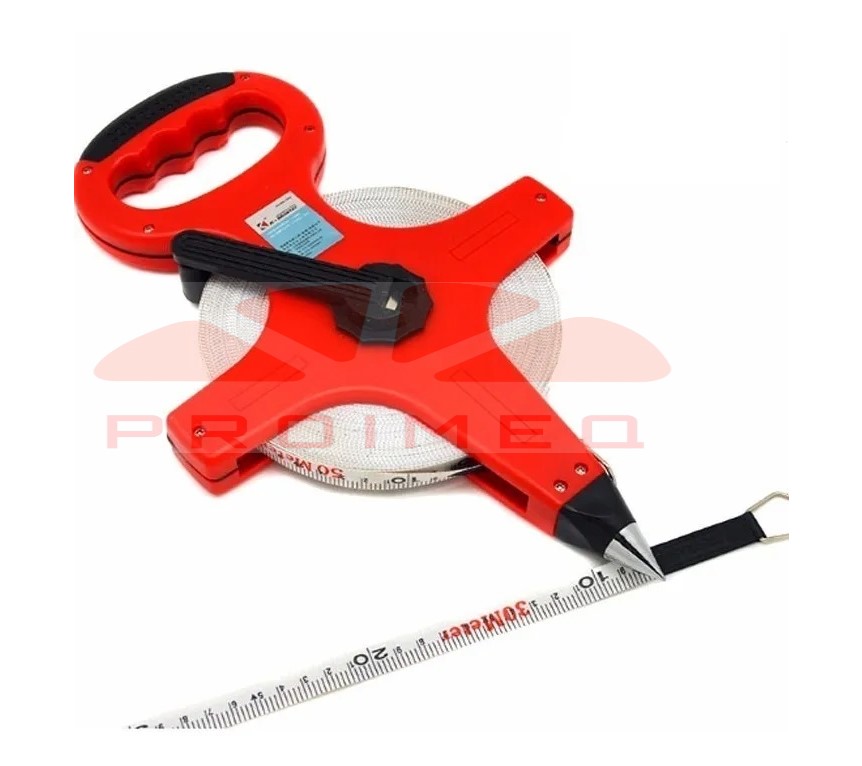 Carrete huincha de medir metalica con manilla 100 mts