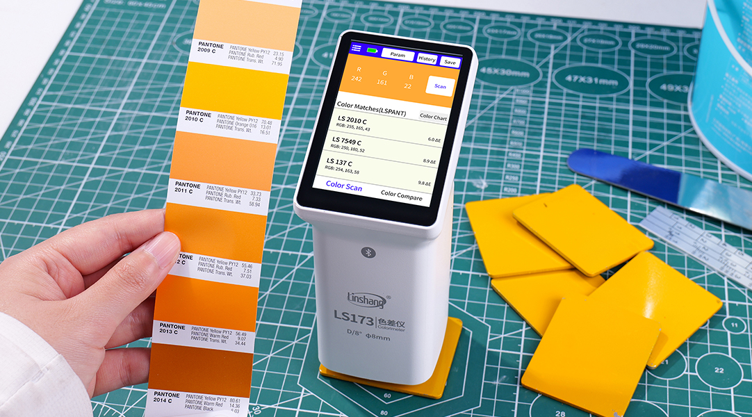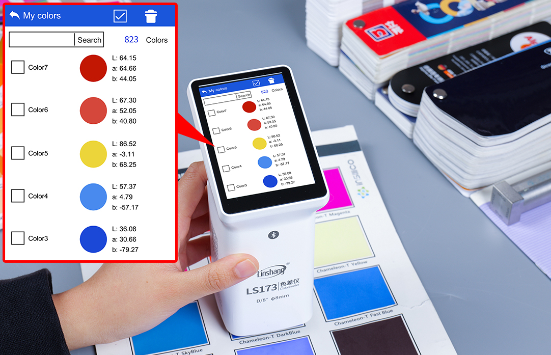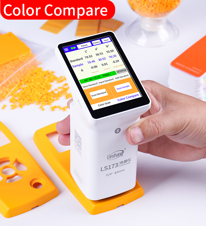 LS173 es un colorímetro portátil multifuncional con diseño de geometría óptica D/8° (SCI). El analizador de color cuenta con una pantalla táctil capacitiva a color IPS de 3,5 pulgadas, que ofrece una excelente experiencia de uso. El colorímetro integra múltiples cartas de colores naturales y permite comparar rápidamente el color medido con los códigos de color más cercanos. El medidor de diferencia de color también cuenta con una función de comparación de diferencias de color, compatible con diversos métodos de adición de color estándar y con la posibilidad de configurar el umbral de diferencia de color. La fórmula de diferencia de color se puede seleccionar con flexibilidad, lo que permite realizar pruebas de control de calidad rápidas.