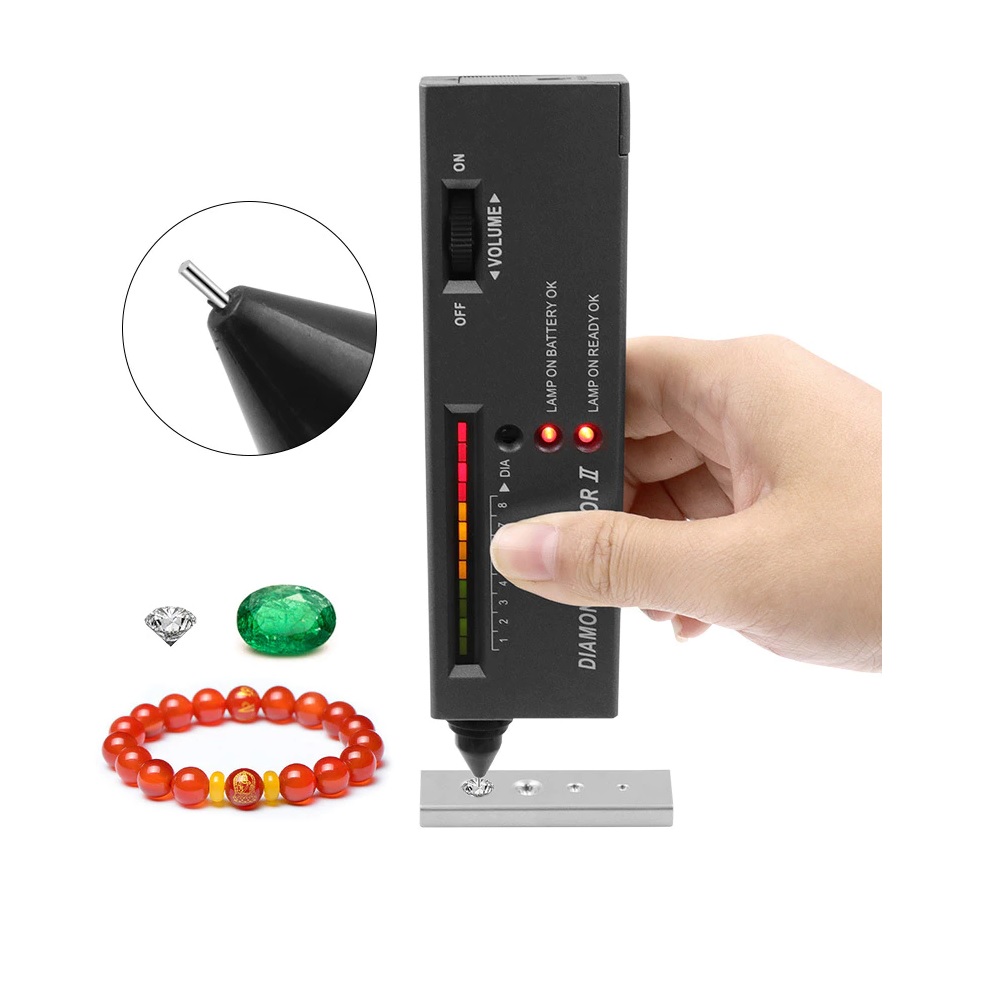 -Se mostrará la luz roja y el indicador de audio sonará si la piedra es un diamante real.